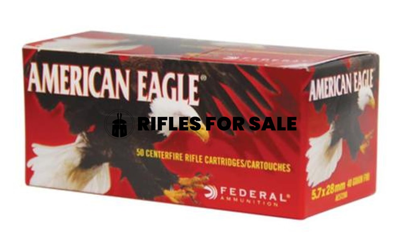 For use in the FN FiveseveN 5.7x28mm handgun. Loaded with 40 grain Speer full metal jacket bullets. Packaged in American Eagle boxes.