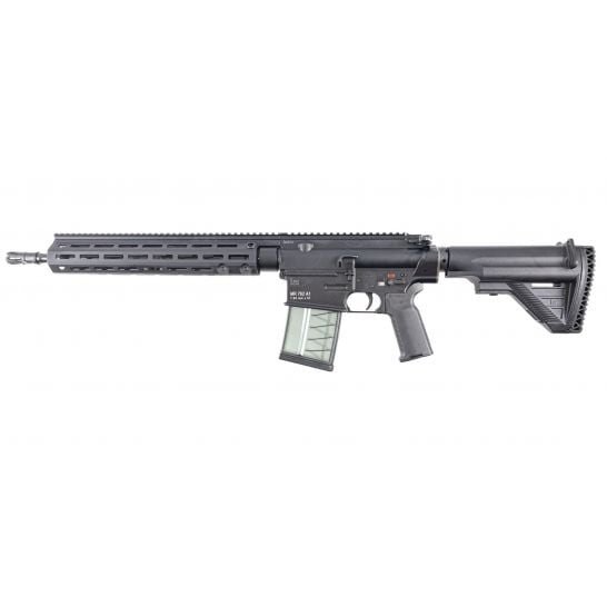 Like its 5.56 mm counterpart, the MR762A1 is a direct descendent of the HK416/417 series, only in a semi-automatic rifle configuration developed for civilian users. Using the HK-proprietary operating system, the MR762A1 is gas operated and uses a piston and a solid operating “pusher” rod in place of the common gas tube normally employed in AR15/M16/M4-style weapons. Pioneered by Heckler & Koch in the G36, HK416, and HK417; this method virtually eliminates malfunctions common to direct impingement gas systems since hot carbon fouling and waste gases do not enter the receiver area. The MR762A1 stays cleaner, reducing heat transfer to the bolt and bolt carrier, and drastically reducing wear and tear on other critical components. The service life of all parts is increased substantially.