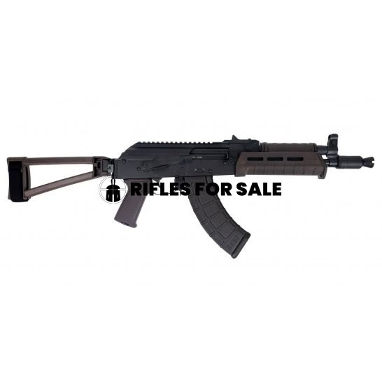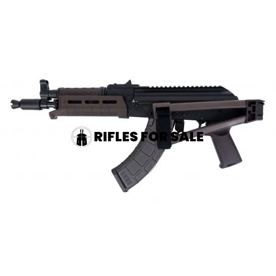 The 4150 barrel is nitride treated for accuracy and durability and is pressed into a new hammer forged front trunnion to ensure the longevity AK-47s are known for. The hardened steel 1mm receiver features a mil-spec style single hook trigger, and side rail mount. The front trunnion and bolt carrier are engraved with GF3 to designate the GF3 hammer-forged model. The pistol is finished with a Magpul polymer handguard, Triangle Side Folding Brace, and Magpul AK-47 polymer grip; Pistol ships with 30 round Magpul magazine (where allowed by law).