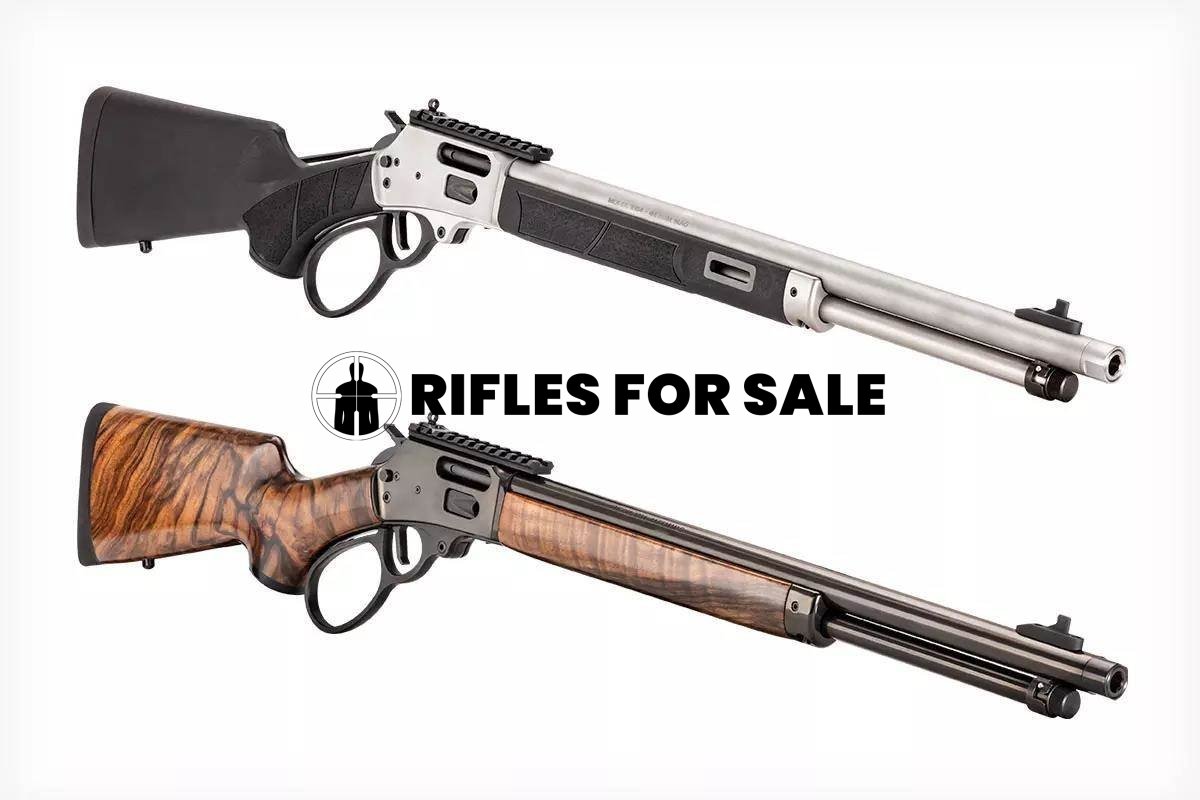 Enjoy a modern twist on a historic masterpiece with the Smith & Wesson® Model 1854 Lever-Action Rifle. S&W’s 1854 brings the latest and greatest desired features like M-LOK® slots on the forend for accessories and a Picatinny optics rail. The large lever loop aids in rapid case extraction and smooth loading. This classic firearm with updated aesthetic fits right into any gun collection. The modern-day enhancements like the flat-faced trigger turn up performance and overall function of this lever gun. The M-LOK slots add aesthetically-pleasing attachment points for accessories like a flashlight, foregrip, laser, or bipod. The rest of the forend maintains classic, streamlined styling. The mag tube design allows you to unload without continuously working the action. The barrel is 19.25″ in length with a 1:20 right-hand twist and 11/16 -24 threaded muzzle for use with a muzzle device or suppressor. The receiver is forged from 416 stainless steel. The synthetic stock features textured panels for enhanced grip and ultimate control. A cross-bolt safety is intuitive and simple to manipulate. Aiming is quick with the XS ghost ring rear sight and gold bead front sight combo.